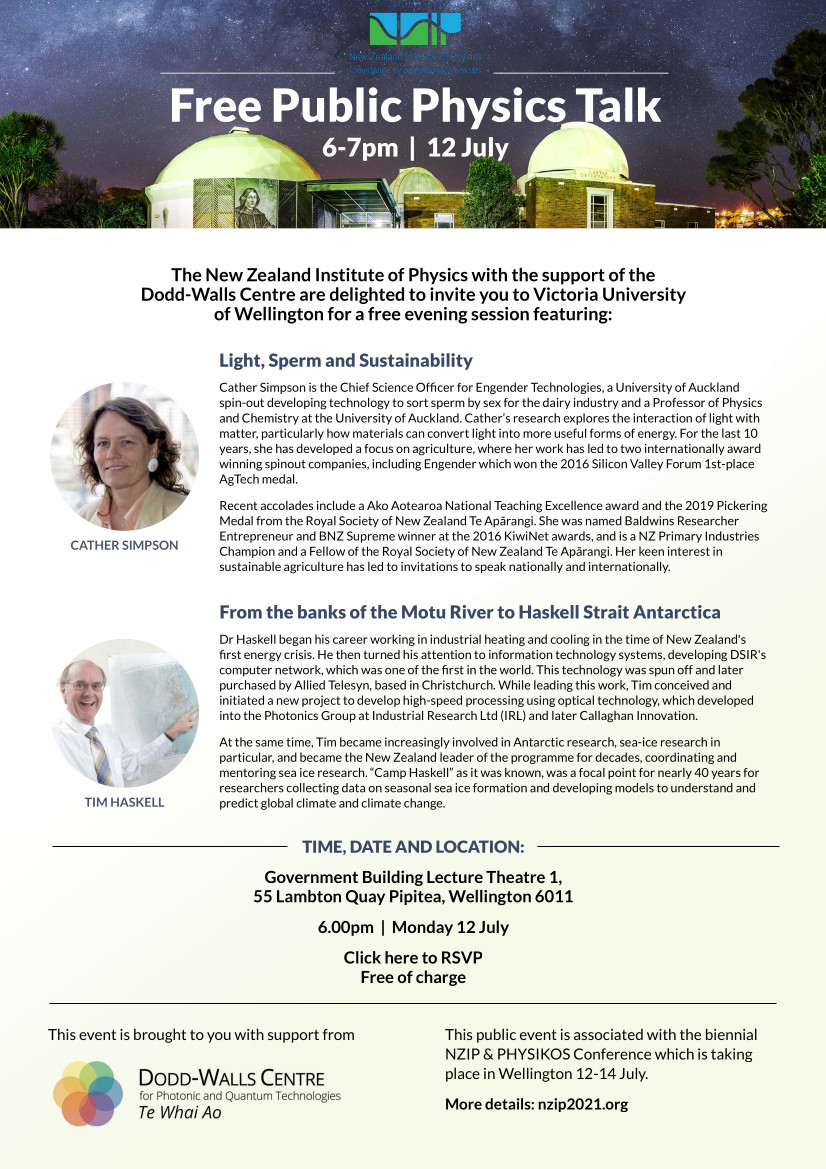 Brought to you with support from Event Partner Dodd-Walls Centre and taking place from 6-7pm on 12th July at VUW's Law Campus Lecture Theatre GBLT1 (55 Lambton Quay, Pipitea Campus). Speakers will include Cather Simpson and Tim Haskell. If you would like to attend and are not attending the conference please click here to RSVP.